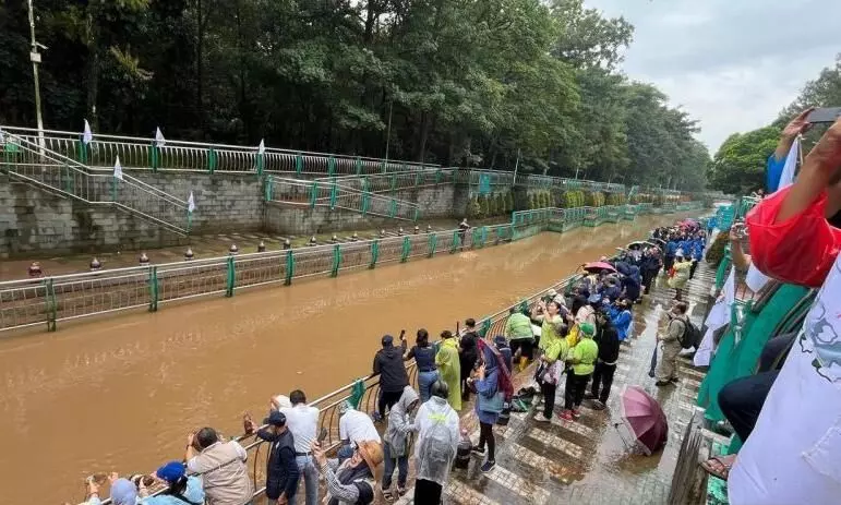 Penebaran ekoenzim yang dilakukan Kementerian Lingkungan Hidup bersama Generasi Muda Buddhis Indonesia (Gemabudhi) dan Direktorat Jenderal Bimas Buddha Kemenag di Sungai Jeletreng, Kota Tangerang Selatan, Minggu (8/3/2026). ANTARA/Asep Firmansyah