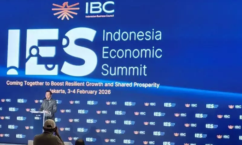 Menteri Koordinator Bidang Infrastruktur dan Pembangunan Kewilayahan (Menko IPK) Agus Harimurti Yudhoyono (AHY) dalam Indonesia Economic Summit (IES) 2026 di Jakarta, Selasa (3/2/2026). (ANTARA/A.Muzdaffar Fauzan)
