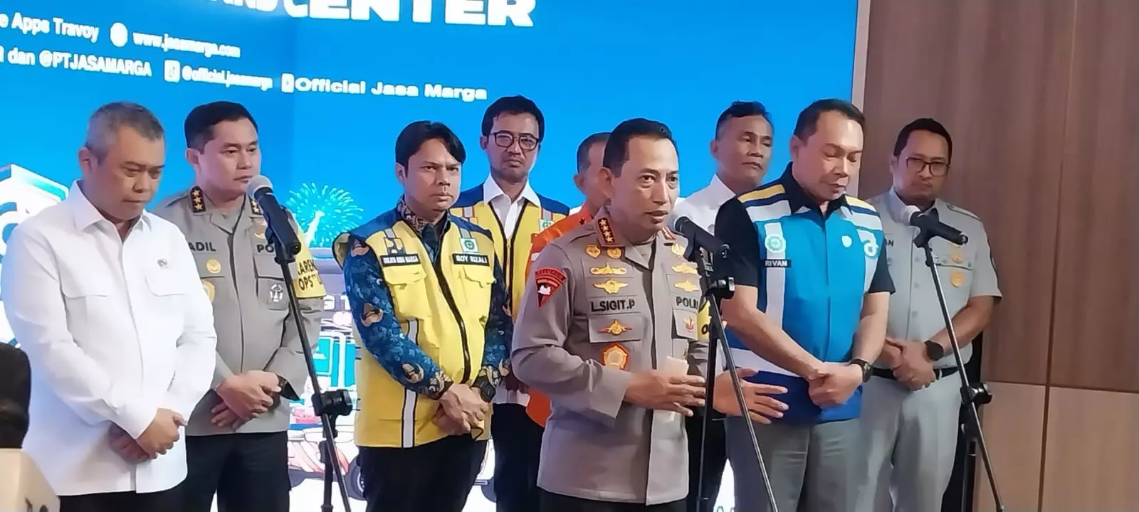 Kapolri Jenderal Polisi Listyo Sigit Prabowo menegaskan kesiapan Polri dalam menghadapi potensi cuaca ekstrem selama libur Natal dan Tahun Baru (Nataru) 2026. Hal tersebut disampaikan Kapolri saat meninjau Jasa Marga Toll and Command Center, Bekasi, Jawa Barat Senin (22/12/2025). Foto : Radio Elshinta Arie Dwi P