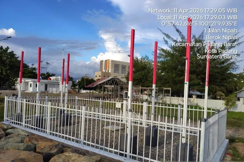 Pemasangan alat high frequency radar di Kota Padang, Sumatera Barat. ANTARA/HO-Stasiun Geofisika Kelas 1 Padang Panjang