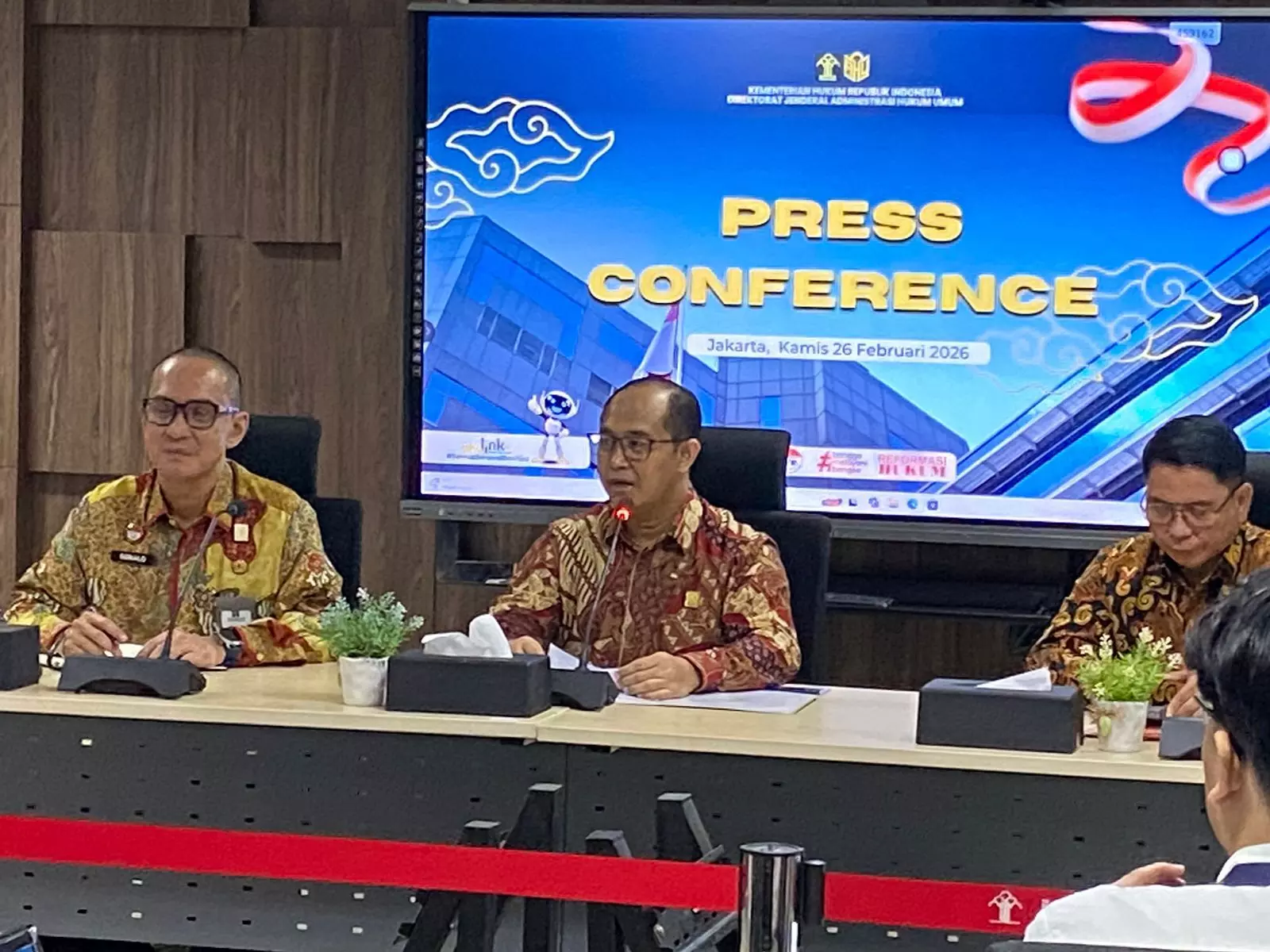 Direktur Jenderal Administrasi Hukum Umum (AHU) Kementerian Hukum, Dr. Widodo, memberikan keterangan kepada wartawan di Kantor Ditjen AHU, Jakarta, Kamis (26/2/2026). Foto : Radio Elshinta Rizki Rian S