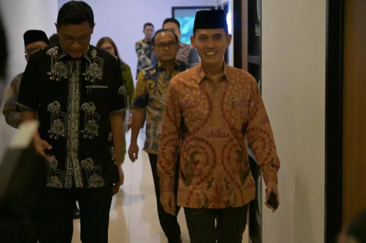 Direktur Jenderal Pajak Bimo Wijoyanto, S.E., Ak., M.B.A., Ph.D, berkunjung ke kantor Majelis Ulama Indonesia (MUI) Pusat disambut Ketua MUI Bidang Fatwa Prof Asrorun Niam Sholeh.