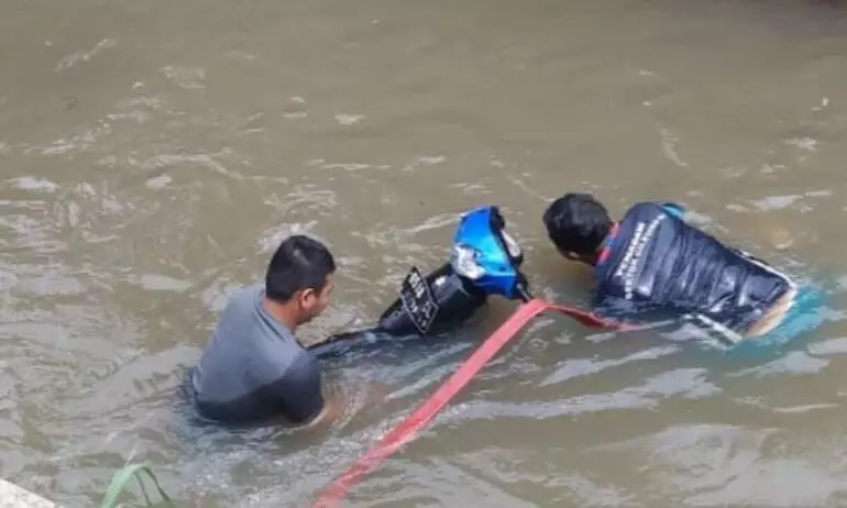 Dua hari beruntun, Damkar evakuasi motor tercebur di Kali Metland