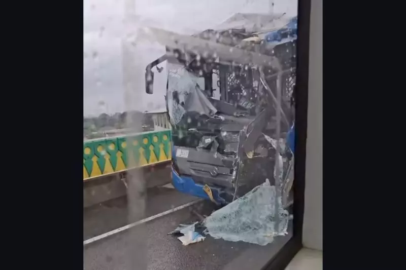 Tangkapan layar video yang memperlihatkan dampak kecelakaan yang melibatkan armada bus Transjakarta di Koridor 13 (Puri Beta-Petukangan) di ruas Swadarma arah Cipulir, Jakarta Selatan, Senin (23/2/2026). ANTARA/Instagram/@info_ciledug