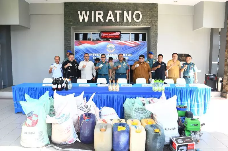 Barang bukti yang berhasil diamankan berupa Sianida (CN) sebanyak 13 karung masing-masing dengan total kurang lebih 650 kilogram, serta tiga dus minuman beralkohol yang terdiri dari satu dus Carlo Rosi dan dua dus Bargin.