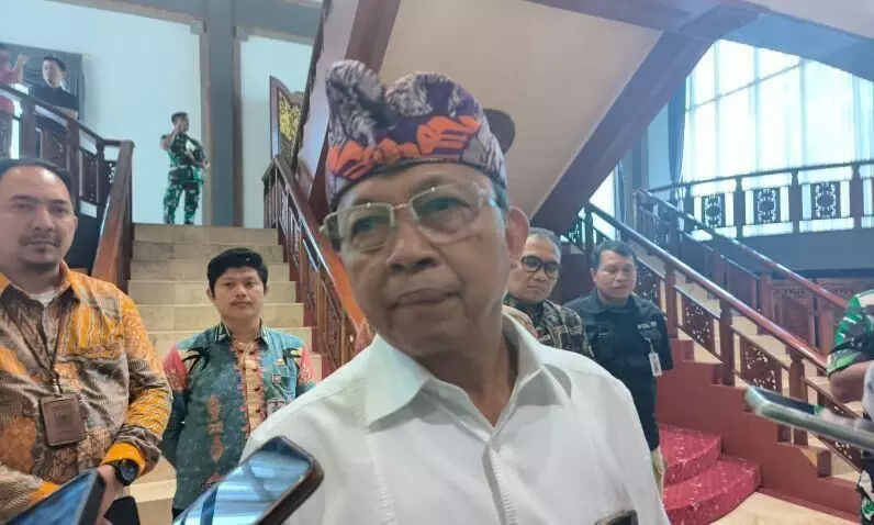 Gubernur Bali Wayan Koster jelaskan soal kabar pemanggilan pejabat Pemprov Bali oleh Kejaksaan Agung stas laporan PWA, Denpasar, Senin 16/3/2026. (ANTARA/Ni Putu Putri Muliantari)