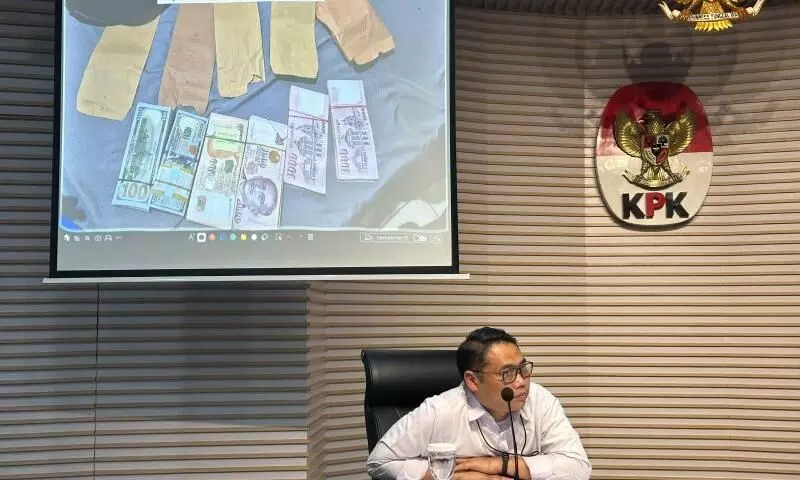 Pelaksana Tugas Deputi Penindakan dan Eksekusi Komisi Pemberantasan Korupsi Asep Guntur Rahayu menampilkan temuan amplop saat operasi tangkap tangan terkait kasus dugaan suap dan gratifikasi dalam importasi barang pada lingkungan Direktorat Jenderal Bea dan Cukai Kementerian Keuangan, di Gedung Merah Putih KPK, Jakarta, Kamis (5/2/2026). ANTARA/Rio Feisal