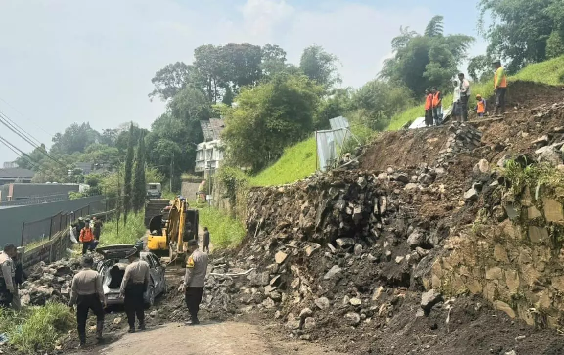 Lebih lanjut petugas BPBD hingga Polsek Cisarua terlihat berada di lokasi untuk melakukan pengangkatan material longsor dan mobil sedan dengan bantuan 1 unit alat berat dan 2 unit dump truk.