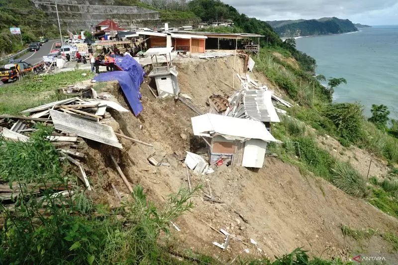 Longsor di JLS Tulungagung sebabkan dua warung jatuh ke jurang