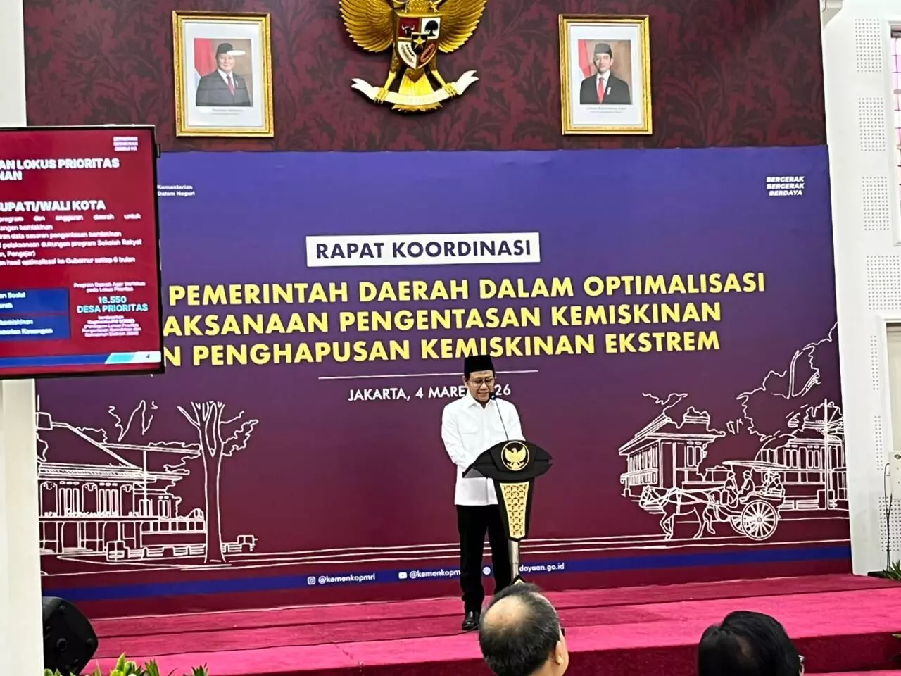 Penegasan tersebut disampaikan Menko PM saat membuka Rapat Koordinasi (Rakor) Peran Pemerintah Daerah dalam Optimalisasi Pelaksanaan Pengentasan Kemiskinan dan Penghapusan Kemiskinan Ekstrem di Jakarta, Rabu (04/03/2026).