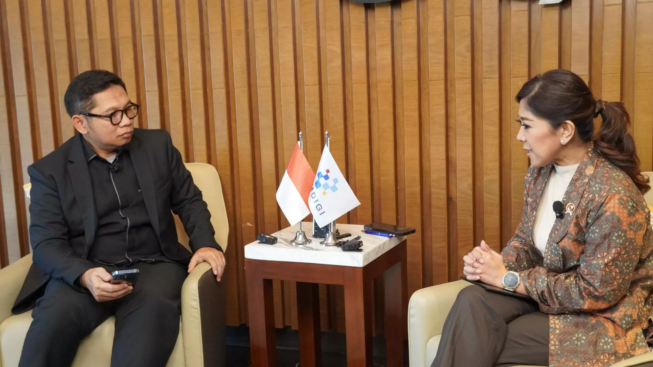 Menteri Komunikasi dan Digital Meutya Hafid wawancara khusus di Radio Elshinta, Satu Tahun Pemerintahan Prabowo-Gibran bersama Pemimpin Redaksi Haryo Ristamaji, Senin (20/102025). Foto : Radio Elshinta Gusti S