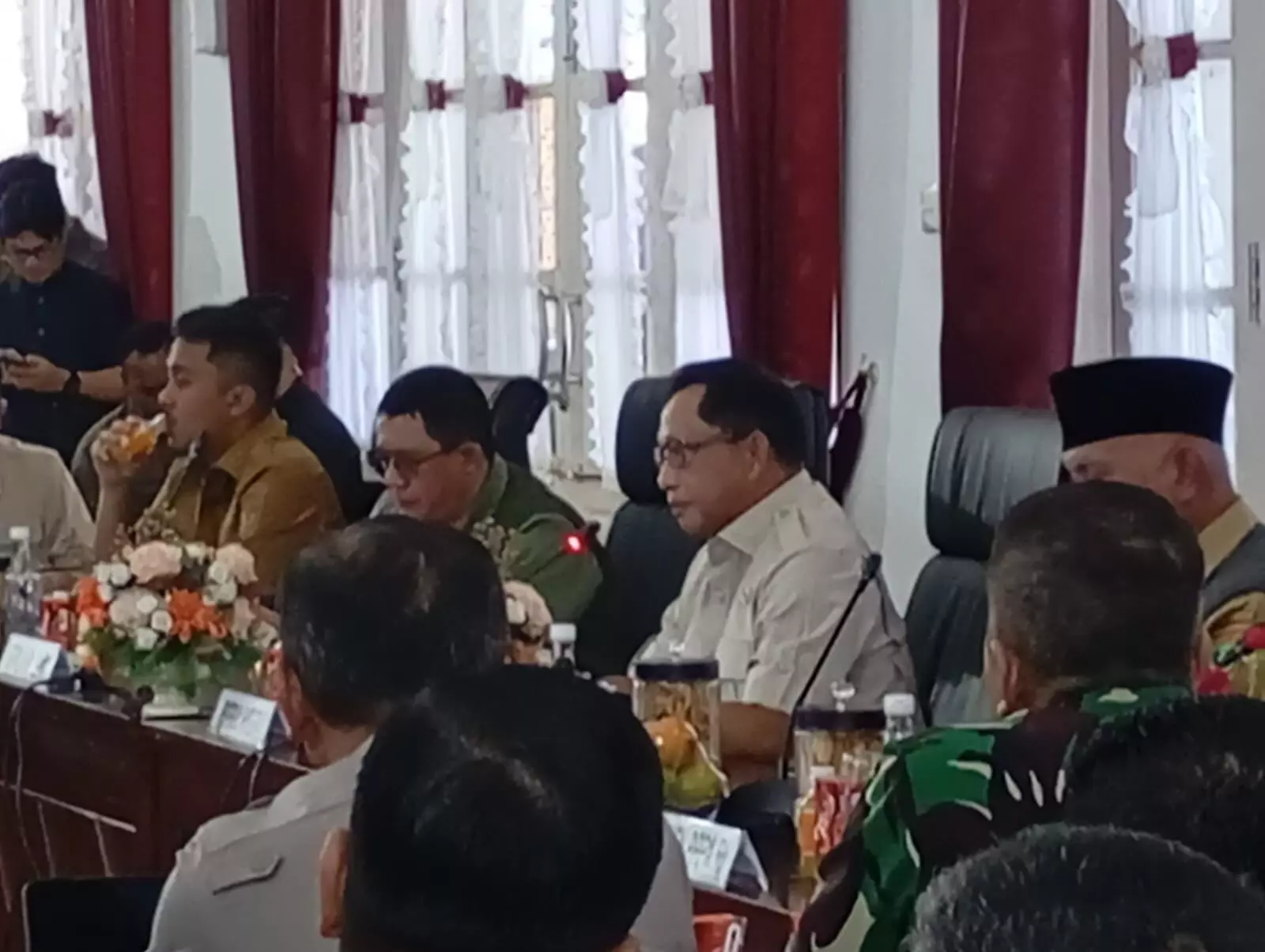 Menteri Dalam Negeri, Tito Karnavian saat memimpin Rapat koordinasi percepatan rehabilitasi dan rekonstruksi pascabencana di Sumatera Barat di Padang, Sumbar, Selasa (13/1/2026). Foto : Radio Elshinta Mustofa