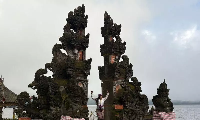 Wisatawan merasakan pengalaman lokal dengan mencoba pakaian adat Bali ketika berkunjung ke Pura Ulun Danu Beratan di Bali. ANTARA/Hreeloita Dharma Shanti