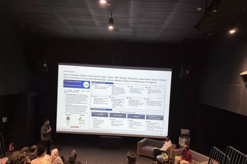 Direktur Utama PT Jakarta Propertindo (Perseroda) atau Jakpro Iwan Takwin memaparkan program kerja pada 2026, salah satunya terkait Planetarium di Jakarta. (ANTARA/Mario Sofia Nasution).