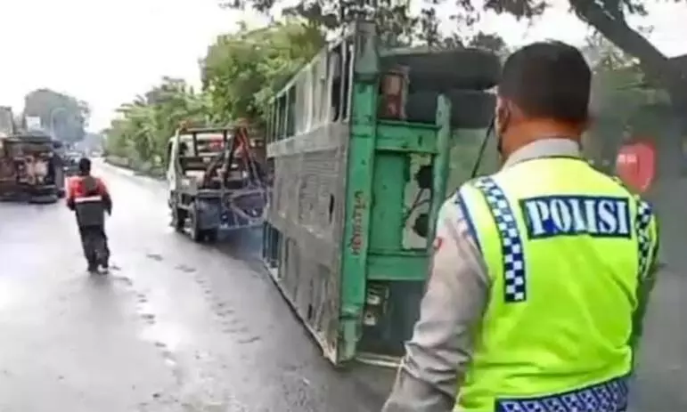 Polisi periksa sopir truk kontainer yang terguling di Cilincing