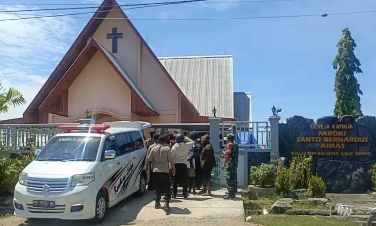 Kepolisian Resor (Polres) Sorong memburu terduga pelaku penikaman yang menewaskan seorang ibu rumah tangga (IRT) muda di depan Gereja Katolik Paroki Santo Bernardus Aimas, Kabupaten Sorong, pada Minggu (18/1/2026).