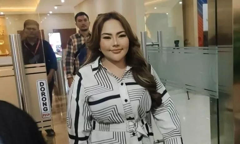 Tersangka kasus dugaan pencemaran nama baik terhadap Ridwan Kamil, Lisa Mariana, keluar dari Gedung Bareskrim Polri, Jakarta, Jumat (24/10/2025). (ANTARA/Nadia Putri Rahmani)