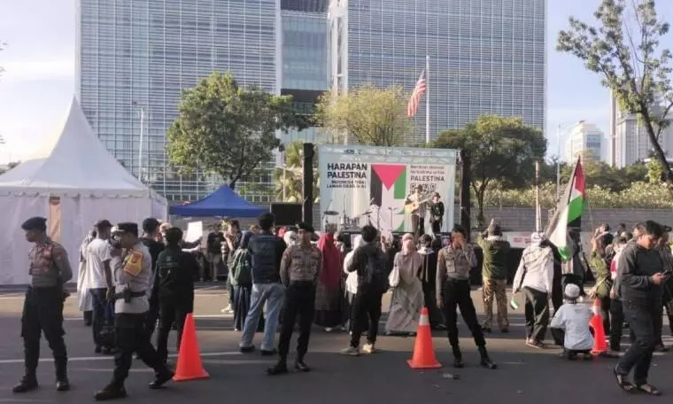 Polres Metro Jakarta Pusat mengerahkan sebanyak 869 personel gabungan untuk mengawal unjuk rasa dari Harapan Palestina di depan Kedubes Amerika Serikat (AS).