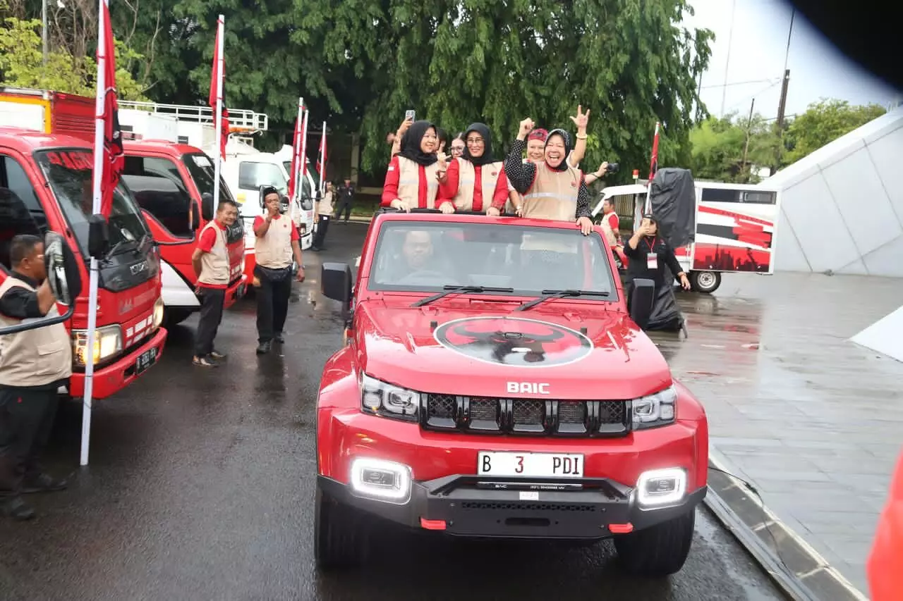 Dalam kegiatan tersebut, Risma bersama Ketua DPP PDI Perjuangan Ribka Tjiptaning meninjau langsung dengan menggunakan mobil BAIC untuk melihat anggota dan relawan Baguna dengan puluhan unit ambulans yang siap diberangkatkan ke wilayah terdampak bencana, termasuk di Sumatra.