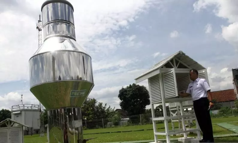 Petugas BMKG memeriksa alat pengukur suhu udara dalam pemantauan Bibit Siklon Tropis 97S dan Siklon Tropis Nokaen di Stasiun Klimatologi BMKG Karangploso, Malang, Jawa Timur, Senin (19/1/2026). ANTARA FOTO/Ari Bowo Sucipto/wsj