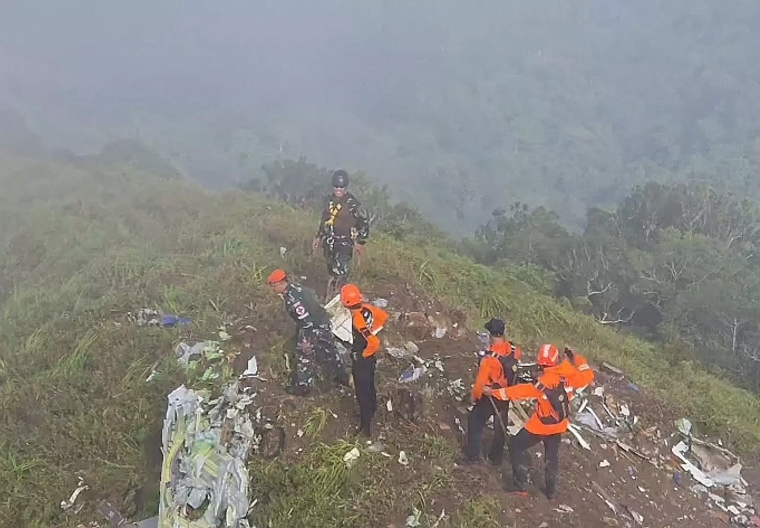Tim SAR gabungan menemukan serpihan pesawat ATR 42-500 meliputi badan pesawat, ekor, dan sejumlah jendela pesawat, Minggu (18/1/2026). Foto : Basarnas