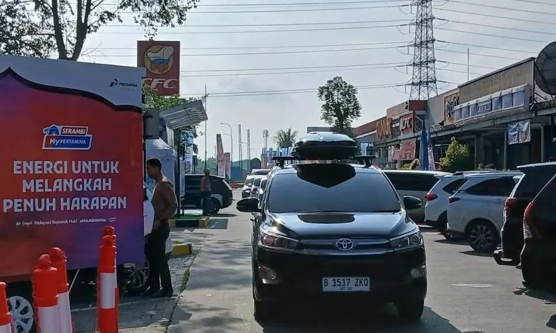 Volume kendaraan mudik di rest area KM 43 Jakarta-Merak mulai ramai