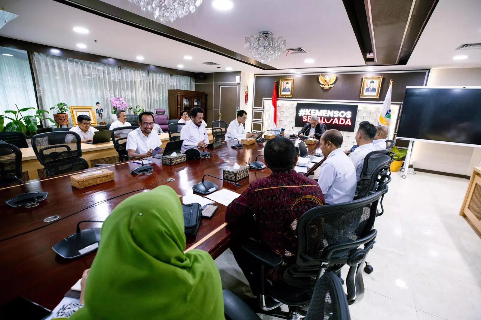 Wakil Menteri Sosial RI Agus Jabo Priyono menerima audiensi pemerintah daerah dari Kabupaten Mamuju Tengah dan Kabupaten Bengkalis di Kantor Kementerian Sosial, Senin (9/3/2026).