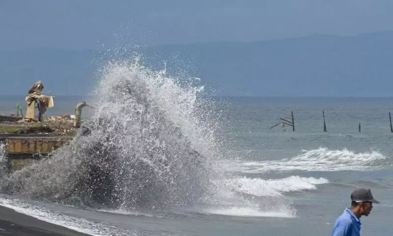 Ilustrasi: Warga berdiri di pinggiran pantai Ampenan saat terjadi gelombang tinggi di sepanjang pesisir pantai Ampenan, Mataram, NTB.ANTARA FOTO/Ahmad Subaidi/hp.