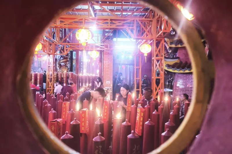 Warga Tionghoa sedang melaksanakan prosesi ibadah di Vihara Thai Hin Bio pada malam Imlek 2026 di Bandarlampung, Senin (16/2/2026). ANTARA/Dian Hadiyatna