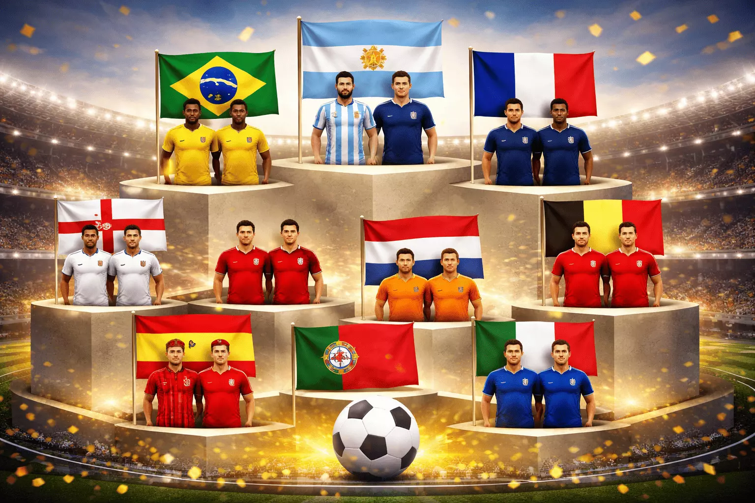Hingga Maret 2026, daftar negara terkuat di ranking FIFA dipimpin oleh Brazil, Prancis, Jerman, Argentina, dan Spanyol. Posisi berikutnya diisi Belanda, Portugal, Inggris, Italia, dan Belgia.