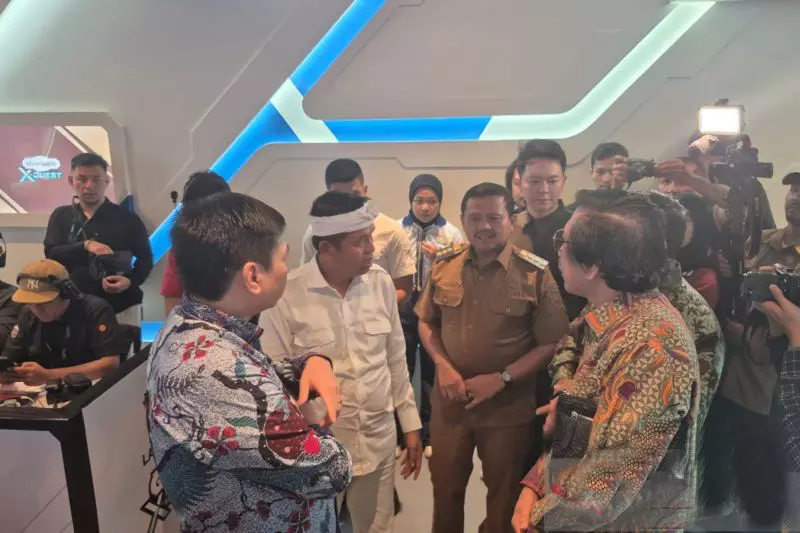 Gubernur Jawa Barat Dedi Mulyadi bersama Bupati Dony Ahmad Munir saat berada di Kawasan Industri Dwipapura Cimanggung, Sumedang pada Selasa (2/12/2025). ANTARA/Ilham Nugraha
