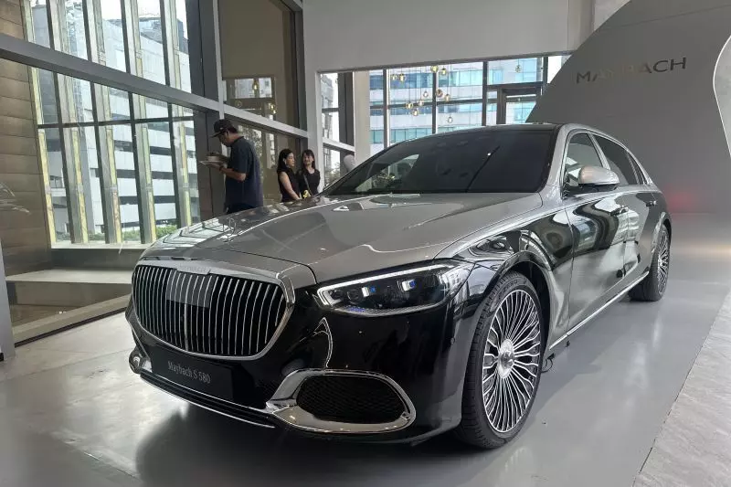 Mercedes-Maybach S 580 yang dipamerkan di showcase mewah pertama Asia Tenggara Mercedes-Benz , "World Beyond", di Autograph Tower, Thamrin Nine, Jakarta Pusat, Selasa (3/2/2026). (ANTARA/Pamela Sakina)