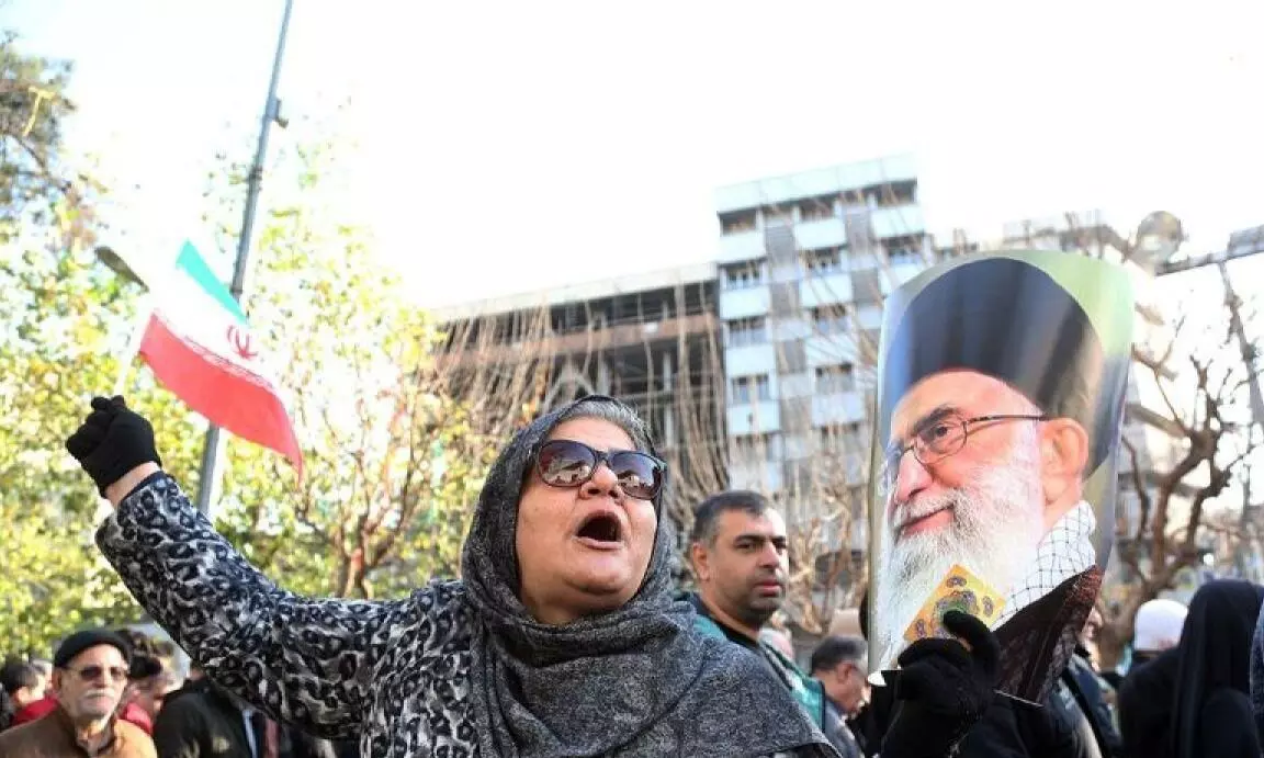 Seorang perempuan memegang foto Pemimpin Tertinggi Iran Ali Khameneisaat ikut serta dalam sebuah demonstrasi di Teheran, Iran, Senin (12/1/2026). Puluhan ribu warga pro-pemerintah turun ke jalan menanggapi seruan dari pihak berwenang Iran untuk menunjukkan solidaritas. ANTARA/Xinhua/Shadati/aa.