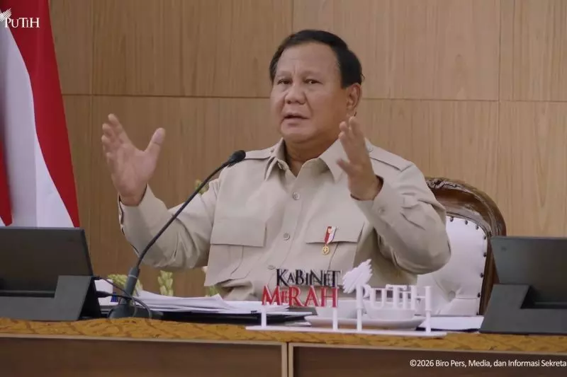 Presiden RI Prabowo Subianto menyampaikan taklimat awal tahun dalam agenda Retret Jilid II di Hambalang, Bogor, Jawa Barat, Selasa (6/1/2026). (ANTARA/HO-Sekretariat Presiden).