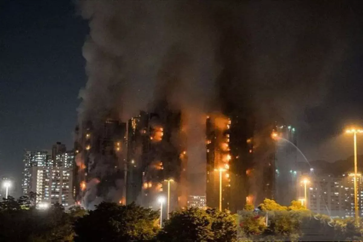 Kebakaran besar di kompleks apartemen di Hong Kong. ANTARA/Anadolu.