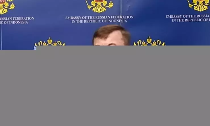 Duta Besar Federasi Rusia untuk Indonesia Sergei Tolchenov saat jumpa pers di kediamannya di Jakarta pada Kamis (26/2/2026). /ANTARA FOTO/Asri Mayang Sari.
