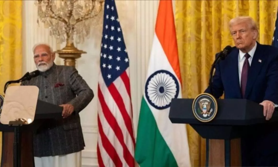 Arsip Foto - Perdana Menteri India Narendra Modi dan Presiden Amerika Serikat Donald Trump menggelar jumpa pers bersama di Gedung Putih, Washington, Kamis (13/2/2025). ANTARA/Anadolu/py/am.