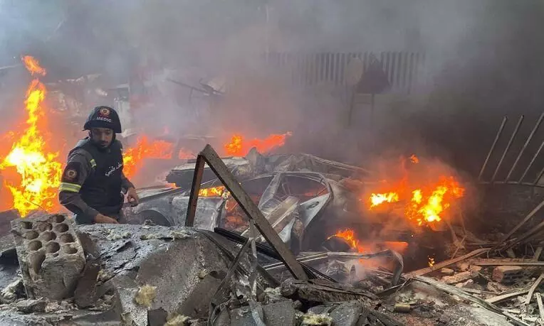 Foto menunjukkan kebakaran yang disebabkan oleh serangan udara Israel di Beirut, Lebanon, Rabu (8/4/2026). ANTARA/Xinhua/Bilal Jawich/aa.