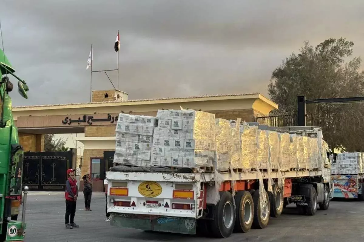 Ilustrasi - Truk-truk pengangkut bantuan kemanusiaan memasuki Gaza dari sisi Mesir di perbatasan Rafah pada 12 Oktober 2025. (ANTARA/Xinhua/Ali Mostafa.)