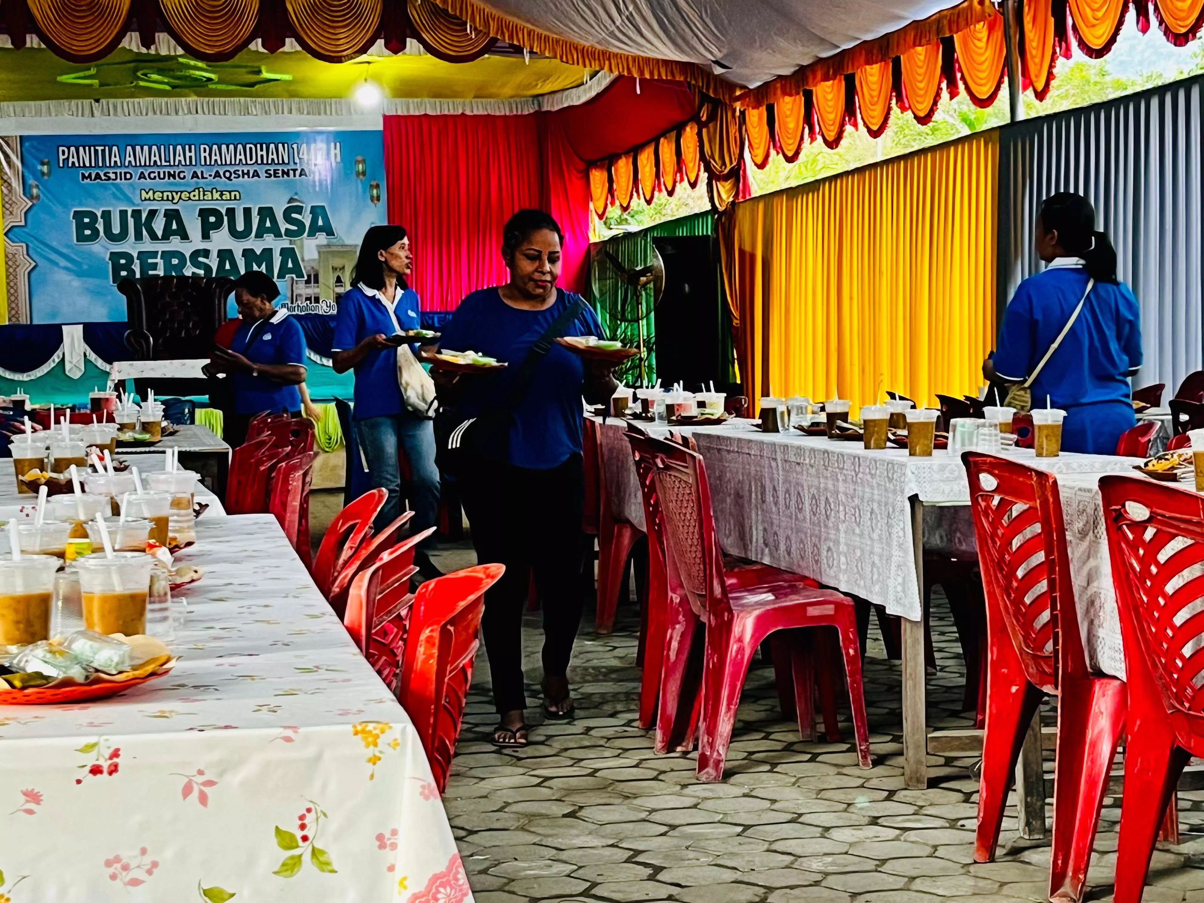 Selain berbuka puasa berama, Wanita Katolik ini juga menyiapkan menu buka puasa dan memberikan takjil gratis kepada masyarakan pengguna jalan maupun bagi umat muslim yang berbuka puasa di Masjid tersebut.