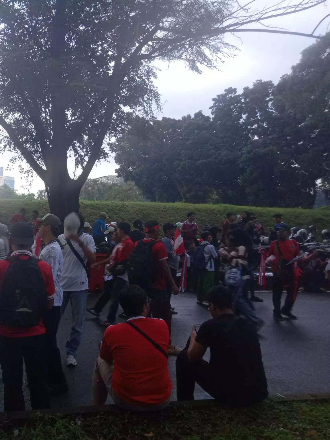 Pendukung Timnas masih penuh gairah menunggu pertandingan selanjutnya dari Tim Nasional kebanggaan mereka. Hal ini terlihat dari bagaimana di Entry Point masih dipadati oleh penonton yang menggunakan jersey Timnas Indonesia.