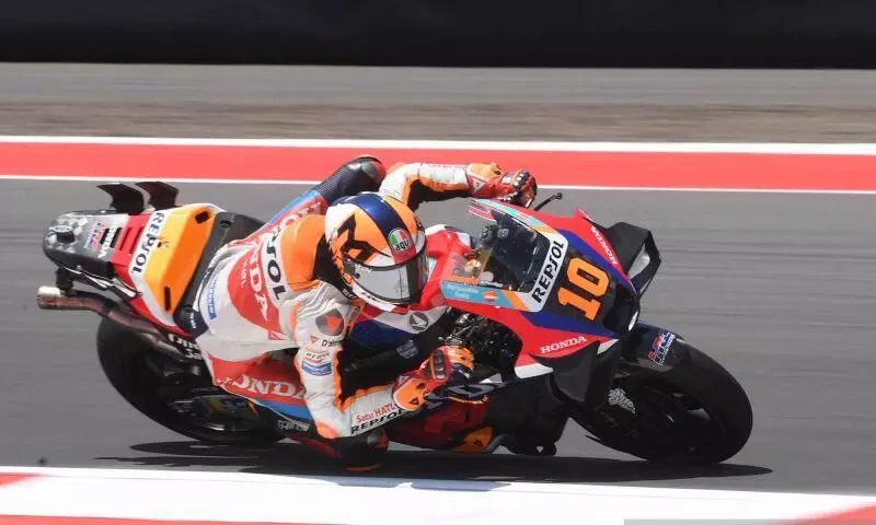 Pembalap Honda HRC Castrol Luca Marini menjadi yang tercepat di sesi latihan bebas 1 (FP1) MotoGP Indonesia yang berlangsung di Sirkuit Mandalika, Lombok, Nusa Tenggara Barat, Jumat.