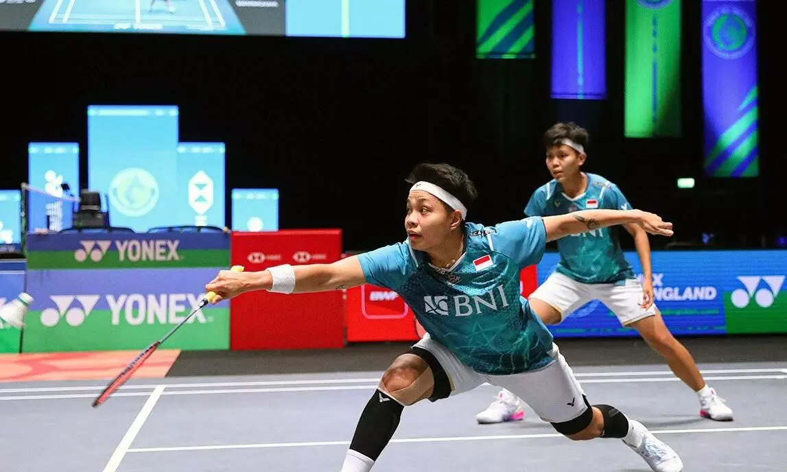 Arsip foto - Ganda putri Indonesia Apriyani Rahayu/Siti Fadia Silva saat berlaga di babak pertama All England Open 2024 di Birmingham, Inggris, Selasa (12/3/2024). ANTARA/HO-PP PBSI/am.