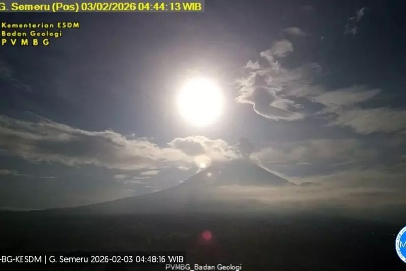Gunung Semeru erupsi dengan tinggi letusan 700 meter di atas puncak pada Selasa (3/2/2026) pagi. ANTARA/HO-PVMBG