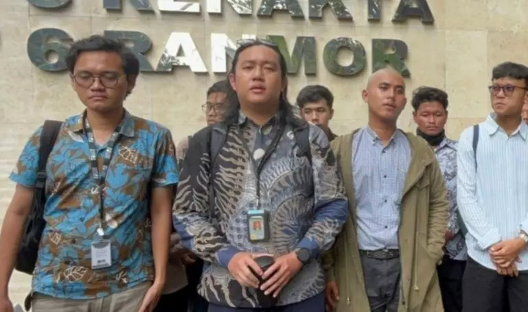 Perwakilan Tim Advokasi untuk Demokrasi (TAUD), Andrie Yunus (kedua dari kiri) saat ditemui di Polda Metro Jaya, Rabu (4/6/2025) (ANTARA/Ilham Kausar)