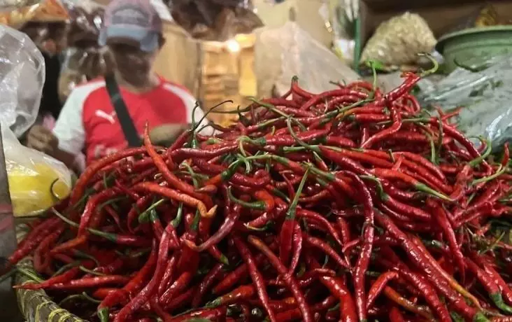 Selanjutnya, komoditas cabai merah keriting di harga Rp47.387 per kg turun Rp8.347 dari hari sebelumnya; lalu cabai merah besar di harga Rp39.000 per kg turun Rp10.847 dari hari sebelumnya. Lalu, daging sapi murni Rp131.167 per kg turun Rp4.358 dari hari sebelumnya, daging ayam ras Rp37.556 per kg turun Rp2.408 dari hari sebelumnya, lalu telur ayam ras Rp30.394 per kg turun Rp1.167 dari hari sebelumnya.