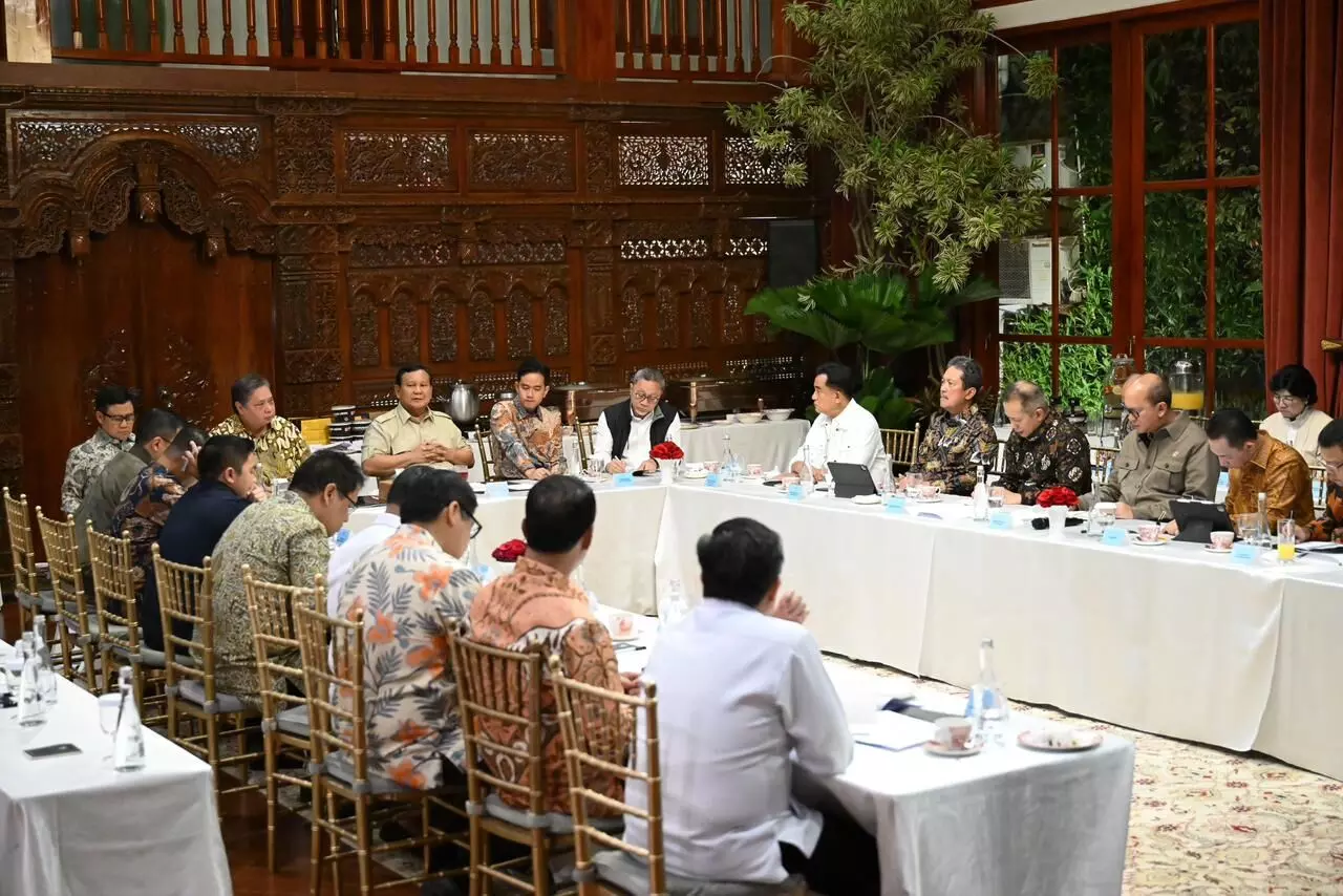 Presiden Prabowo Subianto memimpin pertemuan yang dihadiri Wakil Presiden RI Gibran Rakabuming beserta sejumlah menteri Kabinet Merah Putih. Pertemuan tersebut dilaksanakan di kediaman pribadi, di Kertanegara, Jakarta Selatan, Minggu (12/10/2025) malam.
