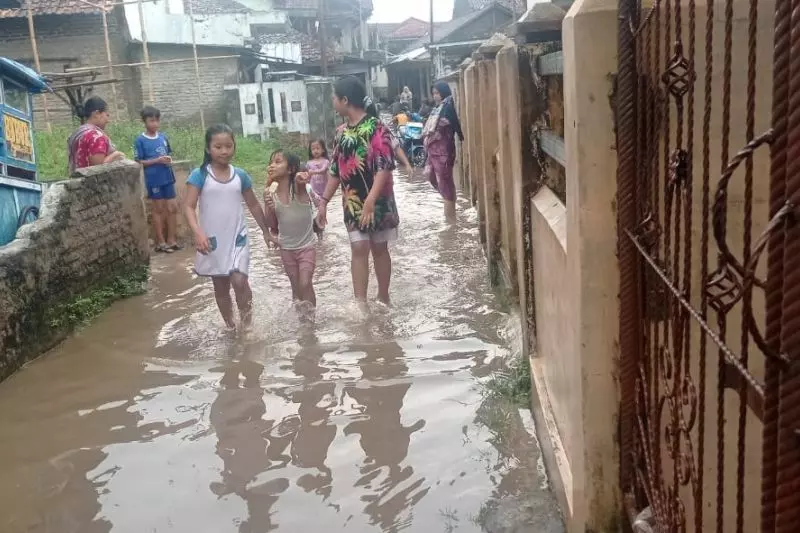Permukiman warga Rangkasbitung, Kabupaten Lebak, Banten belum lama ini dilanda banjir setelah hujan lebat disertai angin kencang dan petir. ANTARA/Mansur
