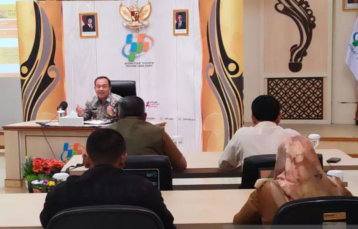 Plt Kepala BPS Provinsi Jawa Barat Darwis Sitorus dalam rilis resmi data statistik bulanan di Kantor BPS Provinsi Jawa Barat, Bandung, Senin (3/11/2025). ANTARA/Ricky Prayoga.