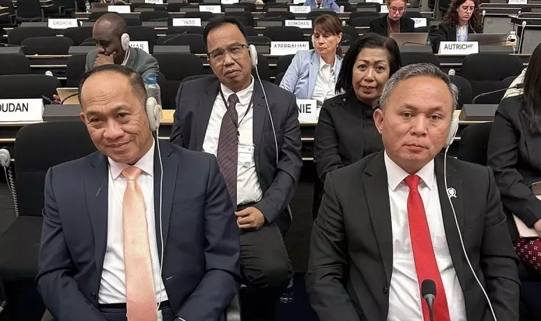 Wakil Menteri HAM Mugiyanto (kanan) mewakili delegasi pemerintah Republik Indonesia dalam Sidang Ke-60 Dewan HAM Perserikatan Bangsa-Bangsa di Jenewa, Swiss, Senin (29/9/2025).
